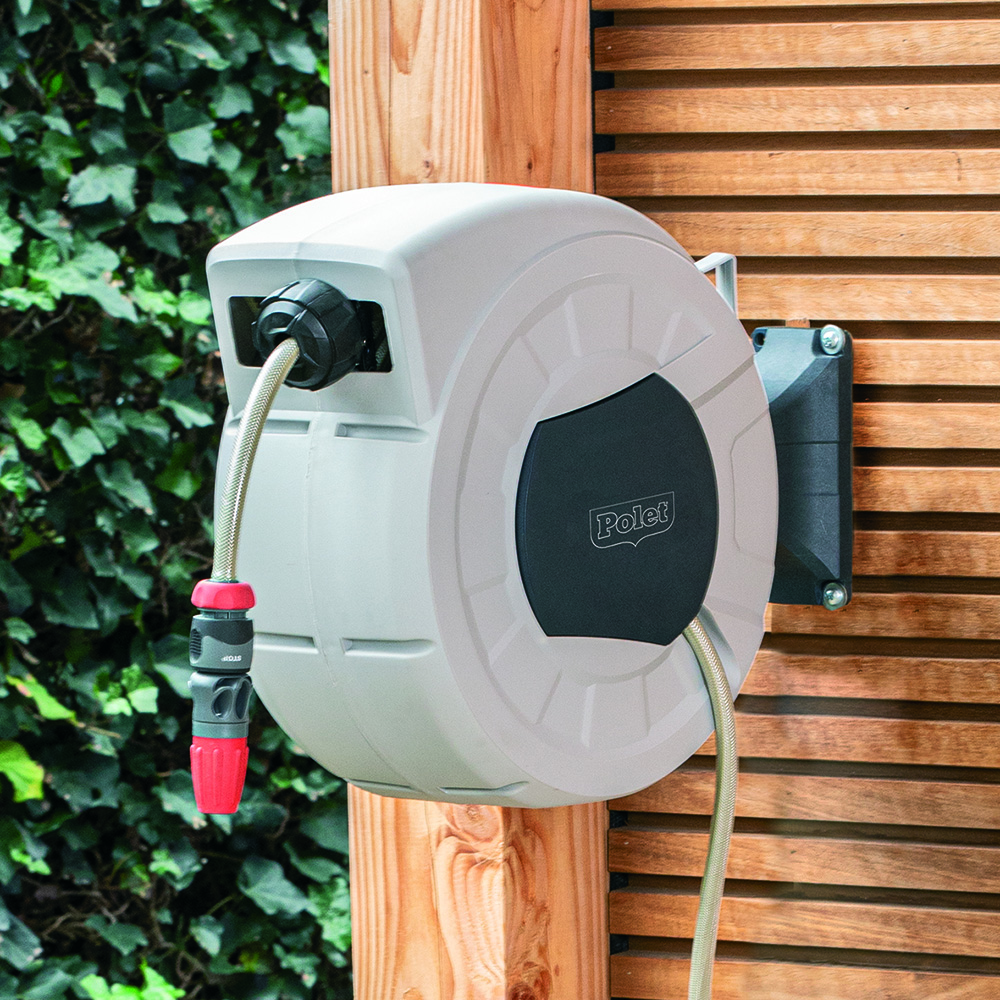 Deze handige wandhaspel van Polet is onmisbaar bij het water geven in de tuin, het afwassen van de wagen en voor diverse klusjes rond het huis en in de tuin.