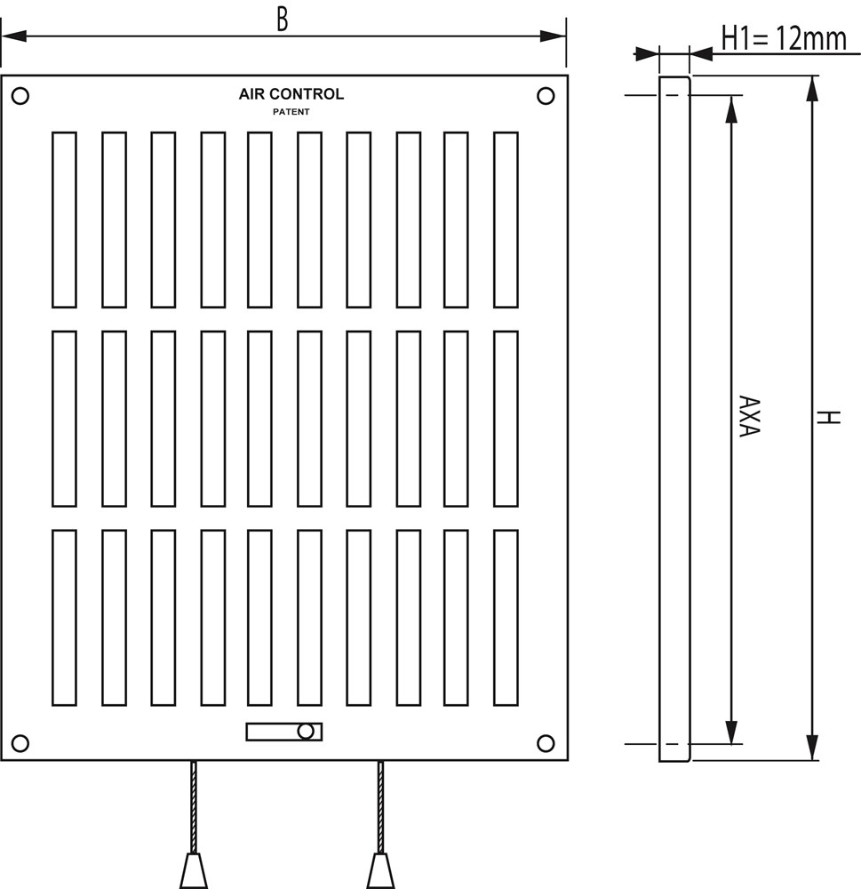 AIR CONTROL Schuifroosters met of zonder vliegengaas, afsluitbaar. Kunststof schuifroosters met koord en schuif, inclusief schroeven. Leverbaar in wit en bruin.
