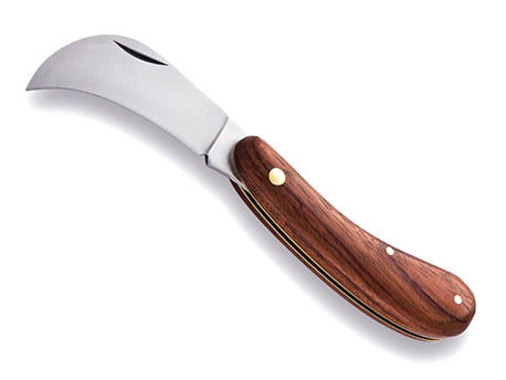 Adola snoeimes, gebogen lemmet, houten handgreep.