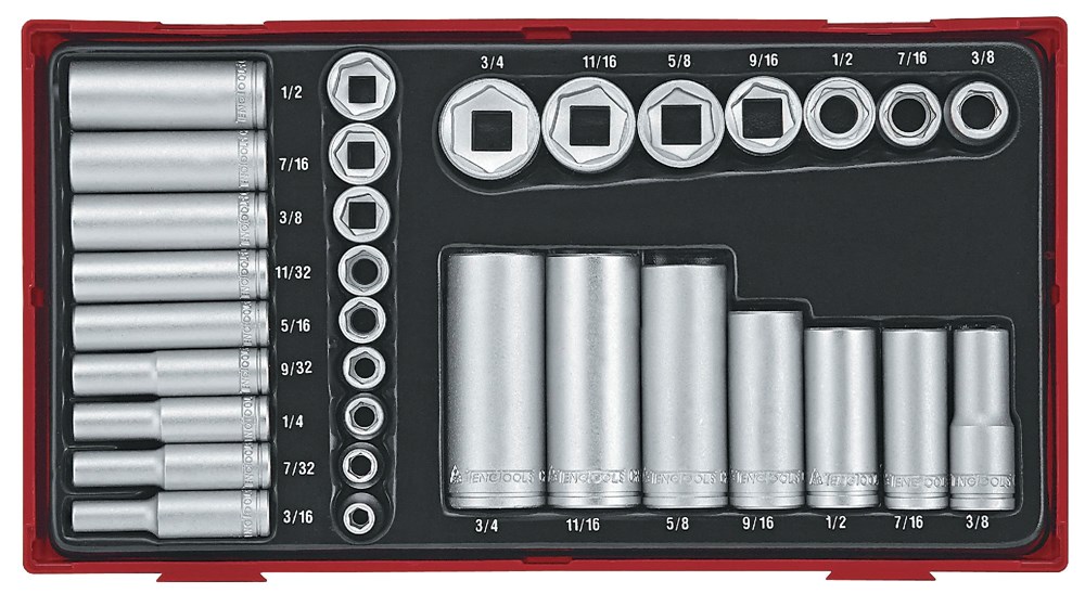 Set van 32 AF doppen 1/4" en 3/8" 6-kant.