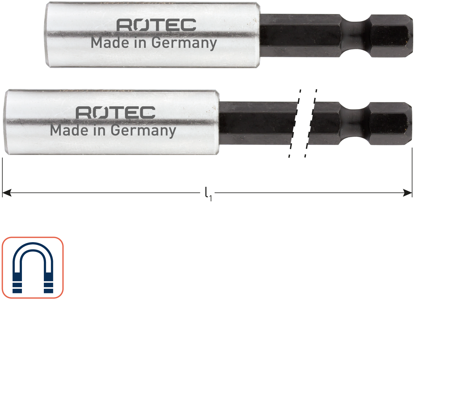 Magn. bithouder E 6,3 x 60mm, met C-ring. Verpakt in kleinverpakking.